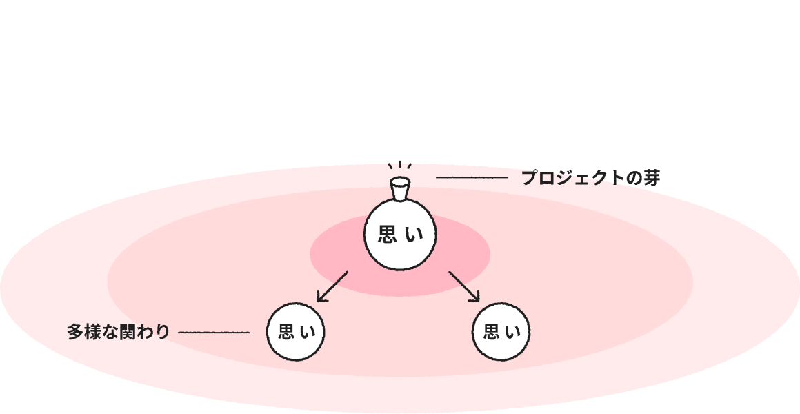 誰もが、善い行いの根源になる思いや感情を備え持っています。事業に伴走する際には、関わる人たちが個性が発揮され自律的に動き、共創が立ち上がっていくように働きかけます。